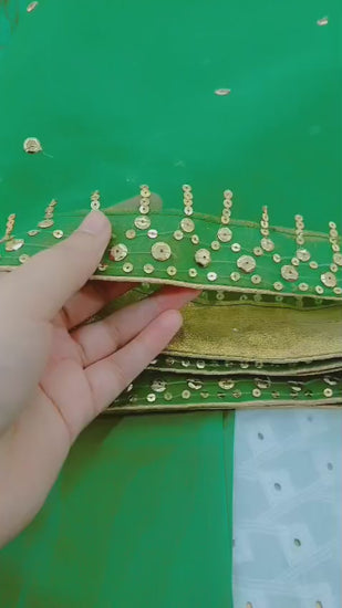 The highlight of this set is the new-style Sitara (sequin) work dupatta, finished with piping on all sides, adding sparkle and sophistication to the look. This piece combines luxury fabric, fine craftsmanship, and timeless design, making it a perfect choice for formal and festive occasions.